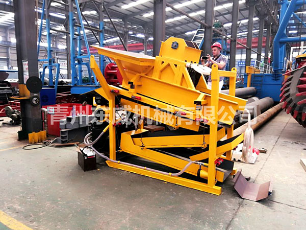 可定做的淘金機(jī)組,具有工作量大、生產(chǎn)成本低、適用范圍廣的特點(diǎn),適用于石頭較多的工況使用。設(shè)備由:料倉、振動(dòng)篩、折返溜槽、水泵組等系統(tǒng)組成,通過電機(jī)或柴油機(jī)驅(qū)動(dòng)滾筒篩及其他水泵系統(tǒng),可通過閥門調(diào)節(jié)水量大小。設(shè)備可根據(jù)工況、結(jié)合客戶需求定制,每小時(shí)可處理50-500噸砂金礦原料。一體化設(shè)計(jì),操作簡單,節(jié)約人工,配合我公司研發(fā)的新型選金皮墊,選金效果明顯,是當(dāng)前砂金選礦中進(jìn)的產(chǎn)品設(shè)備。